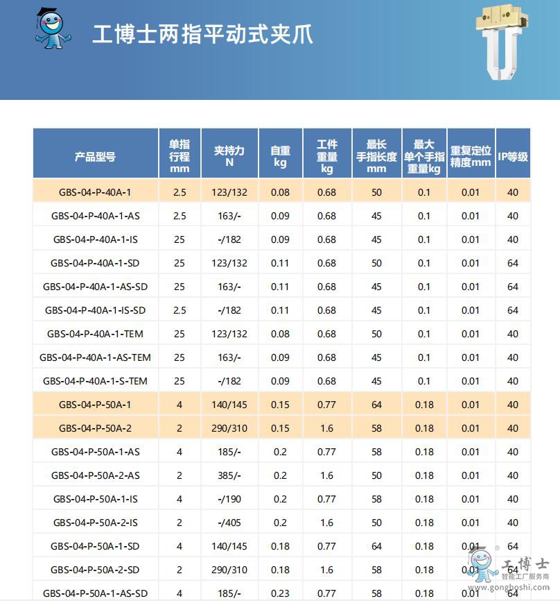 工博士GBS自主兩指平動式夾爪GBS-04-P-40A-1 |