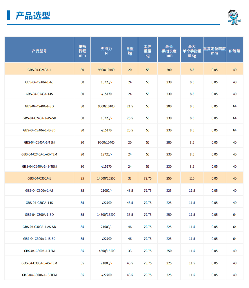 工博士三指定心式夾爪GBS-04-C160A-1-AS單指行程16mm夾持力7990/-N |